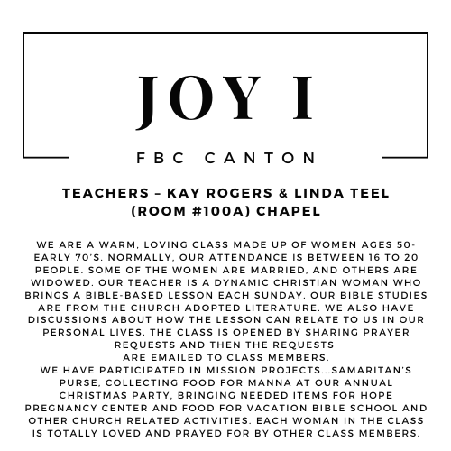 FBC Canton’s Women Ministry purpose is to build godly relationships with women of all ages in the church. Our desire is to encourage and empower the women of our church with the gospel. As a group we provide opportunity for spiritual growth through bible study and prayer. Events and gatherings are designed for cultivating authentic relationship. Overall, we are here to love one another, just as our Jesus Christ has loved us.