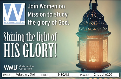 Women on Mission is under the umbrella of W.M.U. of Texas. We meet the first Tuesday of every month in the Chapel Room A102 at 9:30 am. Meetings consist of guest speakers , bible study, missionary spotlight and prayer for missionaries. We have mission projects both for our community and other opportunities outside our area. Women of all ages are welcome. For more information regarding Women on Mission, please contact the Director, Debbie Burden (903-570-4706).