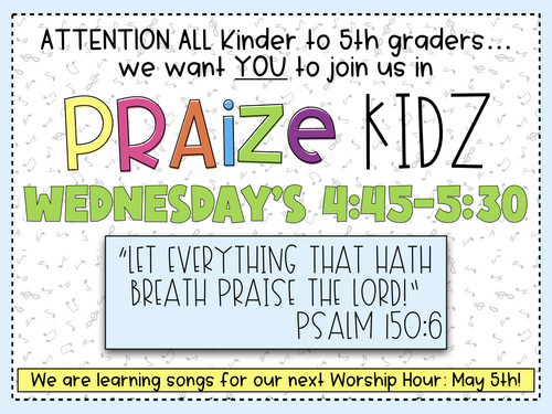 Children's Choir Wednesdays 4:45-5:30 Upstairs in