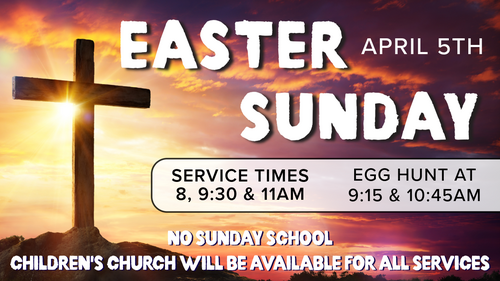 There will be no Sunday School - Children's Church will be available for all services