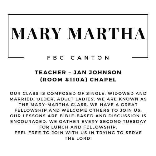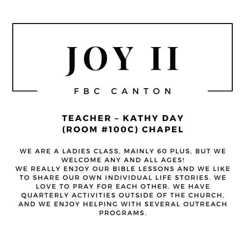 FBC Canton’s Women Ministry purpose is to build godly relationships with women of all ages in the church. Our desire is to encourage and empower the women of our church with the gospel. As a group we provide opportunity for spiritual growth through bible study and prayer. Events and gatherings are designed for cultivating authentic relationship. Overall, we are here to love one another, just as our Jesus Christ has loved us.